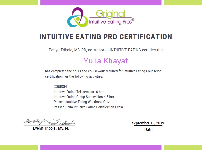 - I see my role in working with clients in coaching and facilitating the process of developing a kind and compassionate relationship with themselves through self-nurturing, balanced eating, establishing a flexible approach to food and cultivating body neutrality